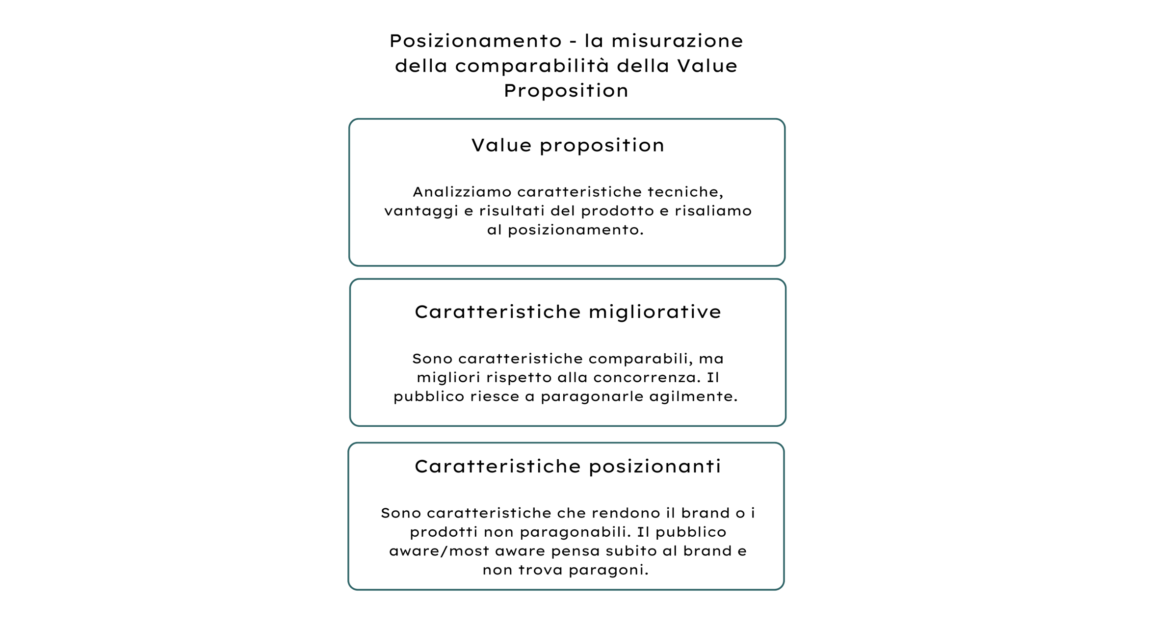 Questo esercizio permette di fare chiarezza sull’unicità, la rarità o la comparabilità della value proposition di un prodotto, con tanti insight per il branding e la comunicazione.
